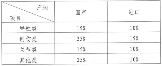 參照浙江省藥械采購(gòu)平臺(tái)網(wǎng)的價(jià)格,各類耗材降價(jià)幅度不得低于以下標(biāo)準(zhǔn):