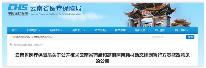 近日,云南省醫(yī)保局發(fā)布《云南省藥品和高值醫(yī)用耗材動(dòng)態(tài)掛網(wǎng)方案(征求意見稿)》(下稱《意見稿》)。