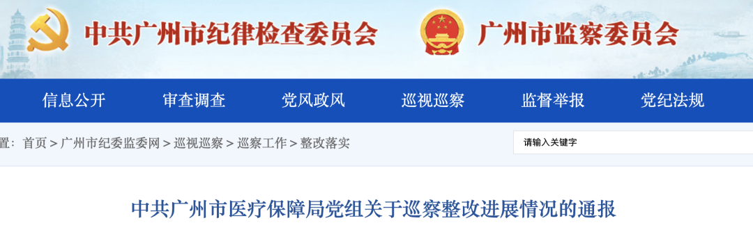 近日,廣東省廣州市紀委監(jiān)委網(wǎng)站發(fā)布《中共廣州市醫(yī)療保障局黨組關(guān)于巡察整改進展情況的通報》。