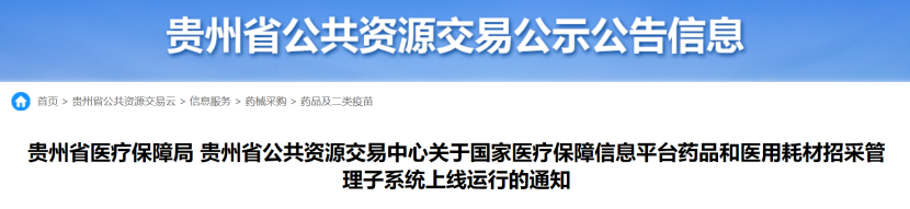 今日(8月31日),貴州省公共資源交易中心發(fā)布《關于國家醫(yī)療保障信息平臺藥品和醫(yī)用耗材招采管理子系統(tǒng)上線運行的通知》,已完成國家醫(yī)療保障信息平臺藥品和醫(yī)用耗材招采管理子系統(tǒng)的部署,將于2022年9月1日上線運行。