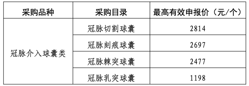 采購品種為冠脈介入球囊類醫(yī)用耗材,包括冠脈切割、刻痕、棘突和乳突球囊,具體目錄如下: