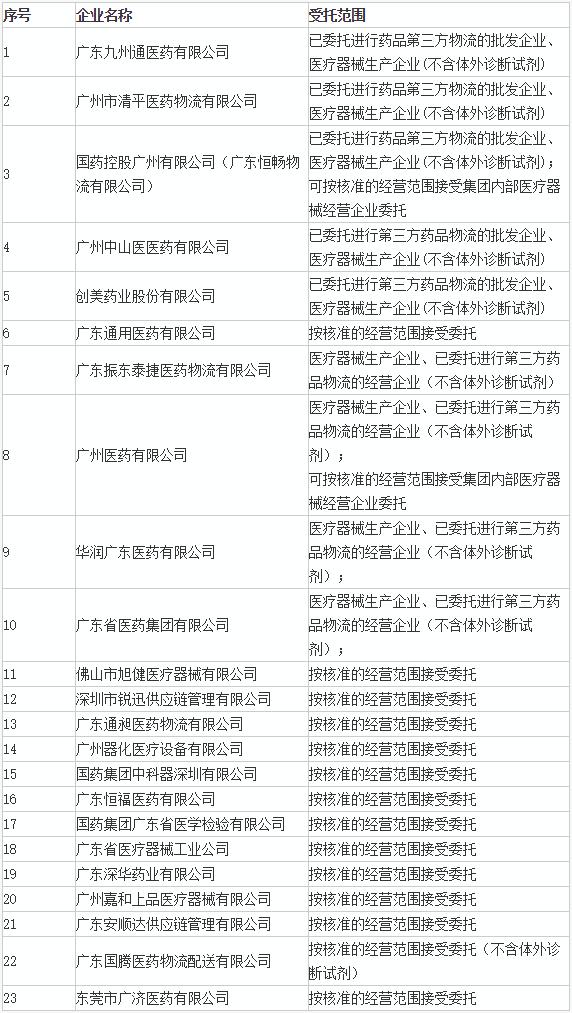 今年3月24日,廣東省食藥監(jiān)局公布了“第三方醫(yī)療器械現(xiàn)代物流試點企業(yè)名單”,共有23家醫(yī)療器械配送商入選。廣東公布的名單用的是“試點企業(yè)名單”,但試點名單是否就全部包括了獲得第三方配送資格的配送商名單呢?