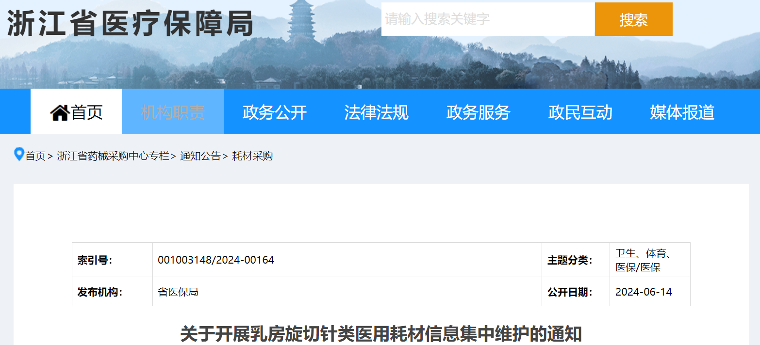 近日,浙江醫(yī)保局發(fā)布《關(guān)于開展乳房旋切針類醫(yī)用耗材信息集中維護(hù)的通知》(簡稱《通知》)。