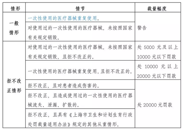 文件中指出,醫(yī)療器械使用單位重復(fù)使用一次性使用的醫(yī)療器械,或者未按照規(guī)定銷毀使用過(guò)的一次性使用的醫(yī)療器械的將按以下規(guī)定處罰。