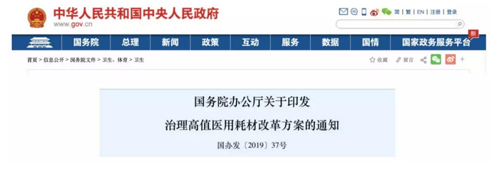 今年國務(wù)院印發(fā)的關(guān)于《治理高值醫(yī)用耗材改革方案》中,明確要求取消醫(yī)用耗材加成,2019年底前實(shí)現(xiàn)全部公立醫(yī)療機(jī)構(gòu)醫(yī)用耗材“零差率”銷售,高值醫(yī)用耗材銷售價(jià)格按采購價(jià)格執(zhí)行。