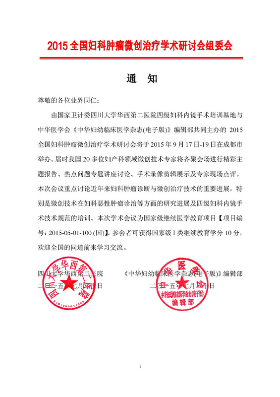 2015全國婦科腫瘤微創(chuàng)治療學(xué)術(shù)研討會組委會