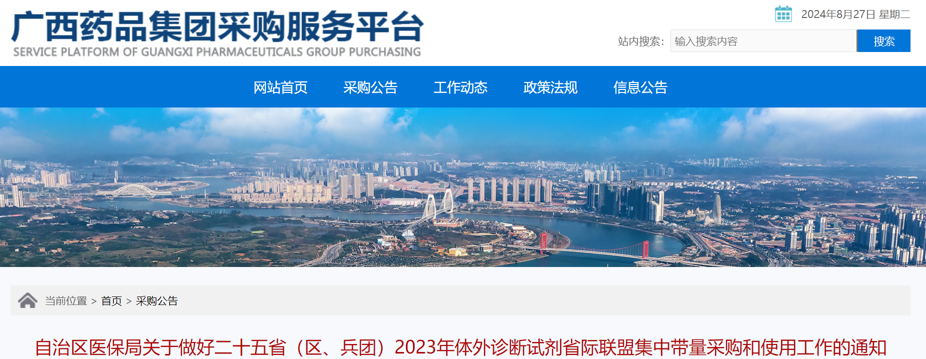 8月26日,廣西壯族自治區(qū)醫(yī)保局發(fā)布《自治區(qū)醫(yī)保局關(guān)于做好二十五省(區(qū)、兵團(tuán))2023年體外診斷試劑省際聯(lián)盟集中帶量采購和使用工作的通知》。