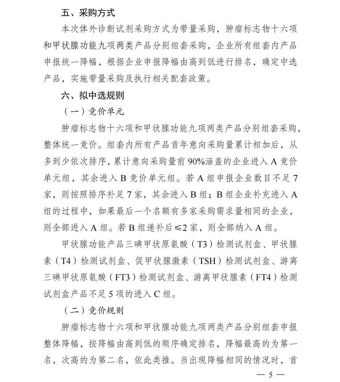 具體規(guī)則上,本次集采對兩類產(chǎn)品開展品分別組套采購,組套內(nèi)所有產(chǎn)品首年意向采購量累計相加后排序,累計意向采購量前 90%涵蓋的企業(yè)進入A競價單元組,其余進入B競價單元組,其他情況如下:
