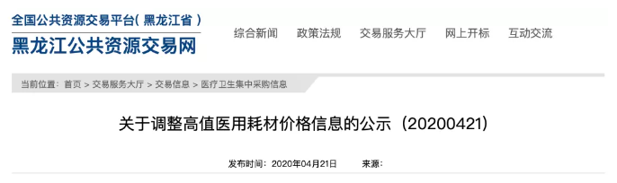 今日(4月21日), 黑龍江省醫(yī)療保障局在該省公共交易網(wǎng)發(fā)布了《關(guān)于調(diào)整高值醫(yī)用耗材價格信息的公示》,內(nèi)容涉及高值耗材掛網(wǎng)產(chǎn)品價格聯(lián)動信息,以及省級中標(掛網(wǎng))價申報價格信息。