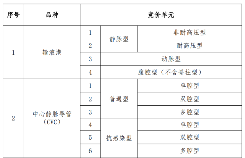 本次集中帶量采購品種為輸液港、CVC 中心靜脈導(dǎo)管(經(jīng)中心靜脈路入)、PICC 中心靜脈導(dǎo)管(經(jīng)外周靜脈路入)、造影導(dǎo)管、造影導(dǎo)絲、血管鞘、血管止血裝置等7 類醫(yī)用耗材。
