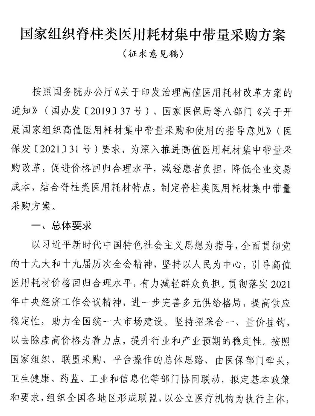 隨著征求意見稿的發(fā)布,脊柱國采又進(jìn)一步。最終降價幅度是否會再次刷新大家的認(rèn)知呢?