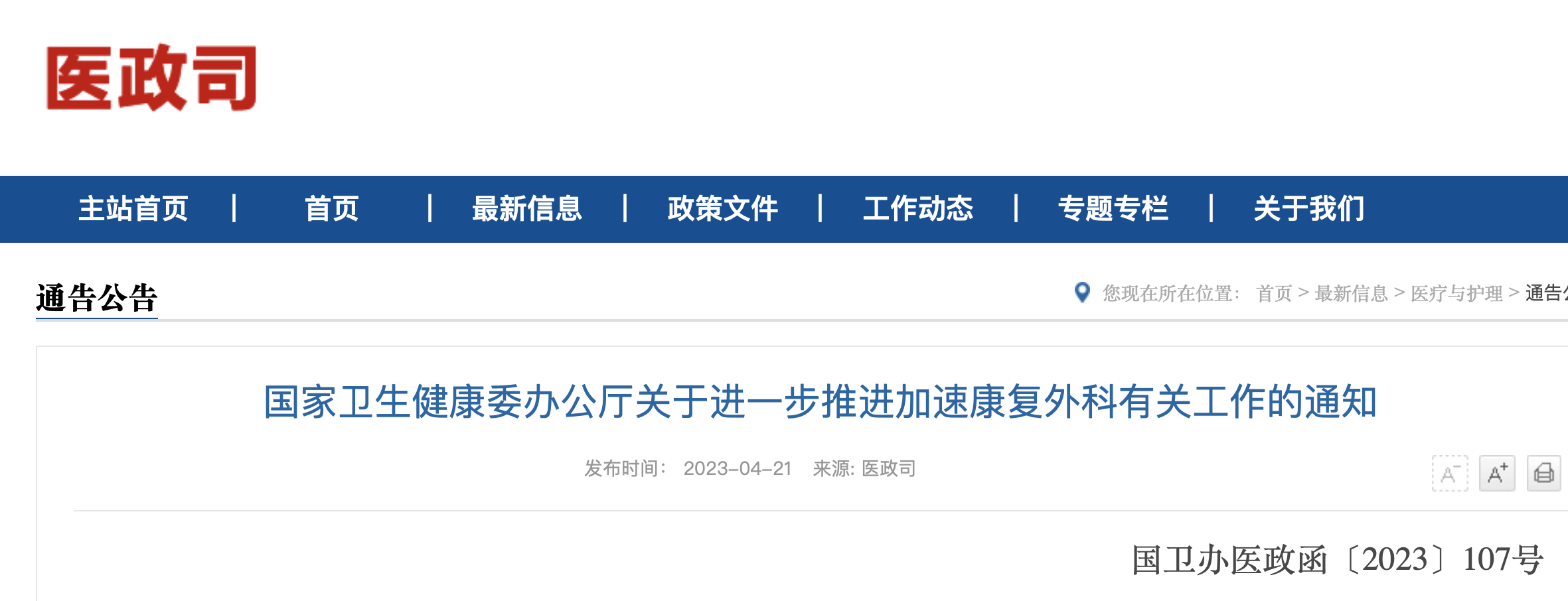 4月21日,國(guó)家衛(wèi)健委辦公廳發(fā)布《關(guān)于進(jìn)一步推進(jìn)加速康復(fù)外科有關(guān)工作的通知》(以下簡(jiǎn)稱(chēng)《通知》),要求進(jìn)一步推進(jìn)加速康復(fù)外科有關(guān)工作。