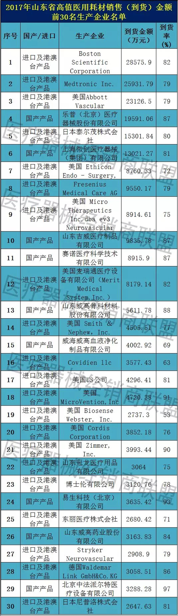此外,山東威高、威海威高、賽諾醫(yī)療、易生科技、北京中法派爾特等5家國(guó)產(chǎn)品牌也進(jìn)入銷(xiāo)售金額前30名生產(chǎn)企業(yè)名單!