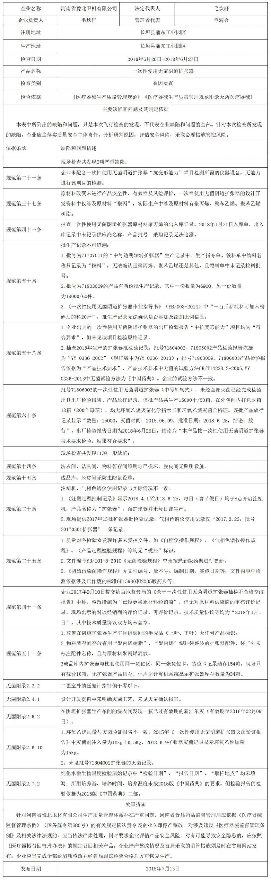 附件:對河南省豫北衛(wèi)材有限公司飛行檢查通報