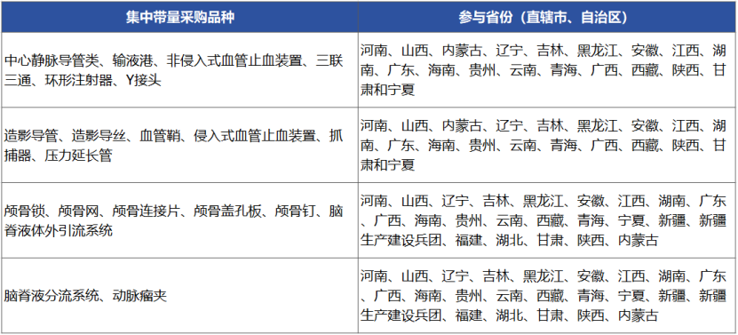 此次集采由河南省牽頭山西、內(nèi)蒙古、遼寧、吉林、黑龍江、安徽、福建、江西、湖北、湖南、廣東、廣西、海南、貴州、云南、西藏、陜西、甘肅、青海、寧夏、新疆和新疆生產(chǎn)建設(shè)兵團(tuán)等二十三個(gè)省(區(qū)、兵團(tuán)),組成省際采購(gòu)聯(lián)盟,對(duì)通用介入類(lèi)和神經(jīng)外科類(lèi)醫(yī)用耗材開(kāi)展帶量采購(gòu)工作。