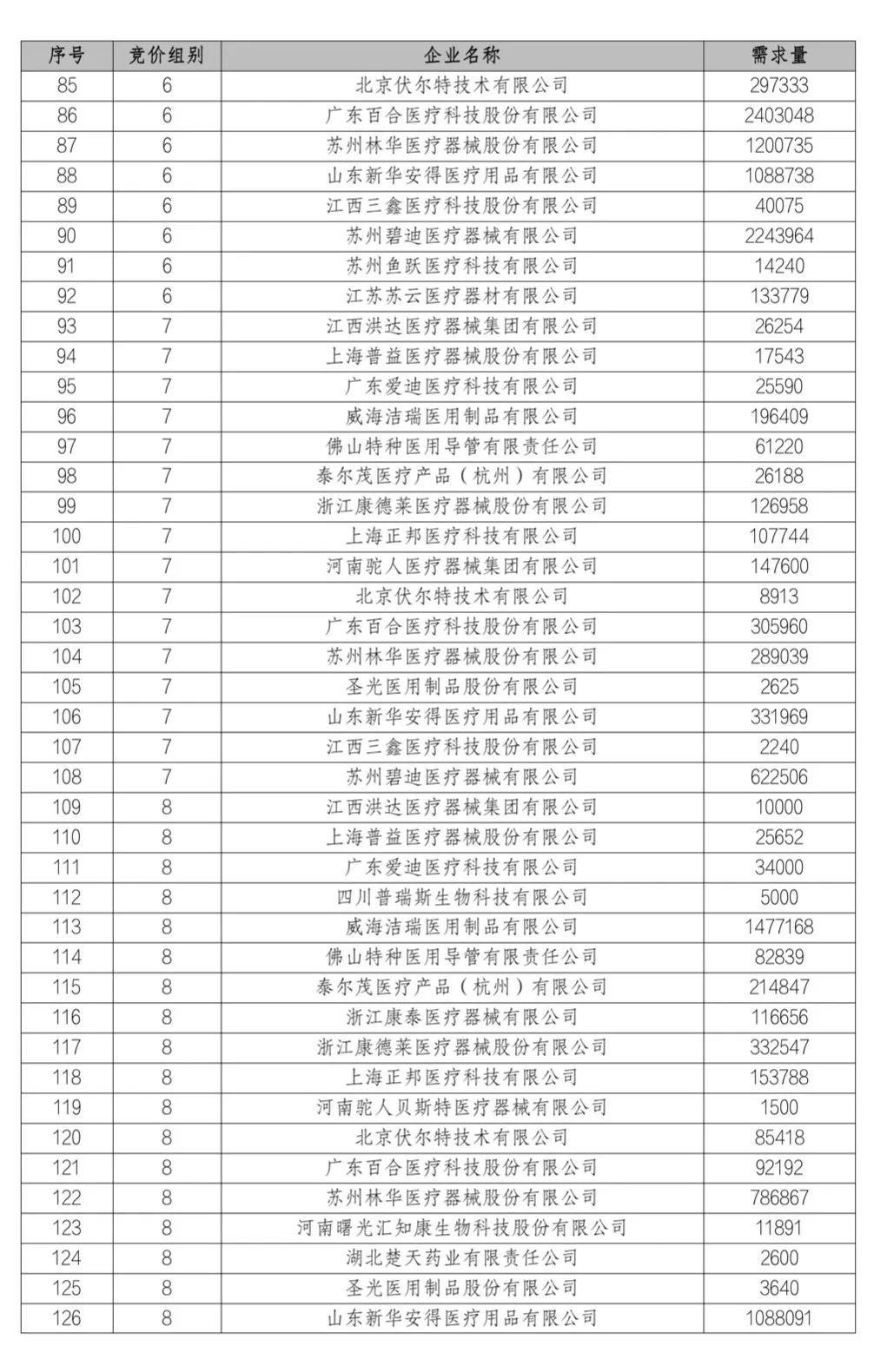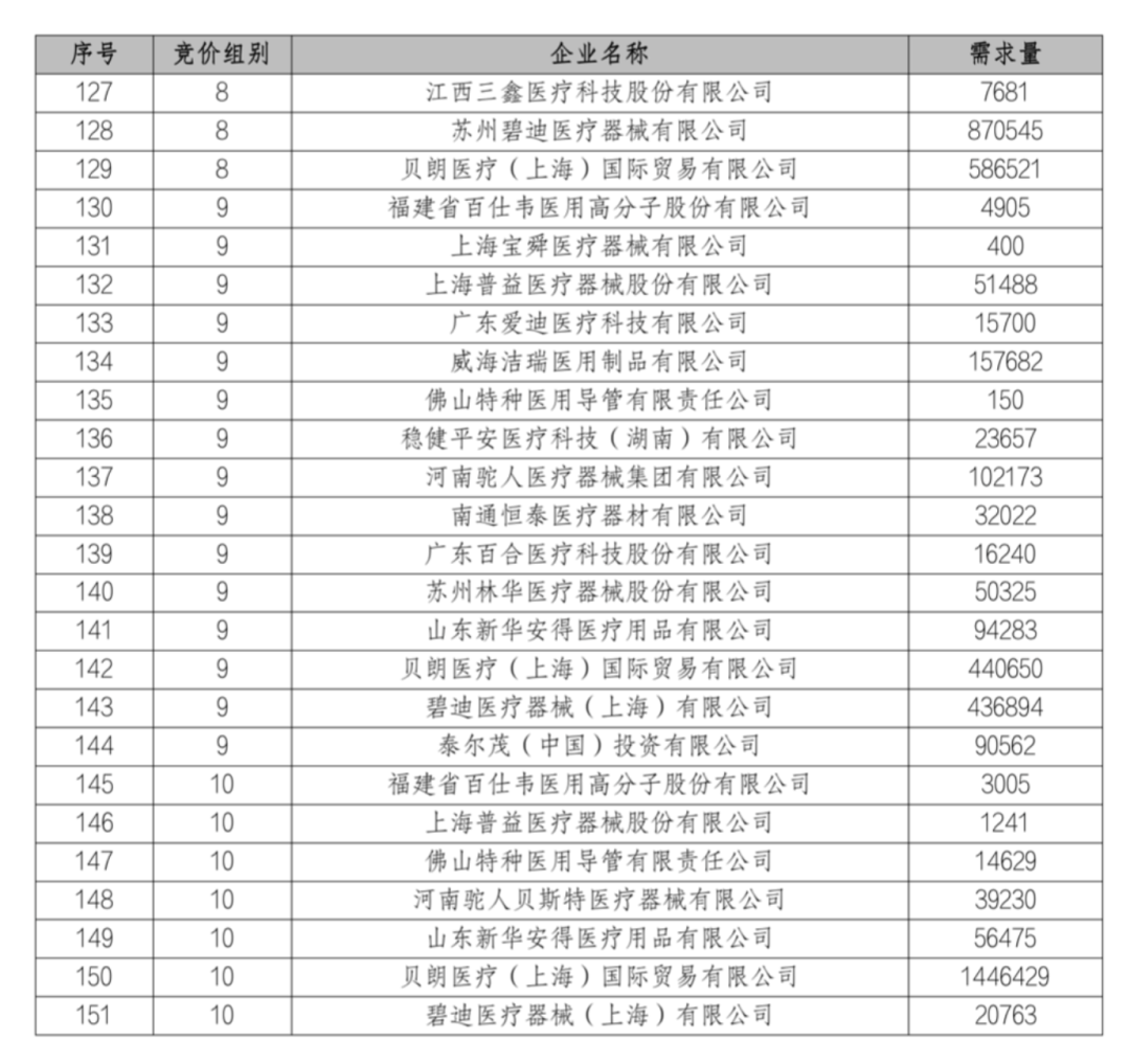 據(jù)觀察,蘇州碧迪醫(yī)療、林華醫(yī)療、威海潔瑞(威高股份子公司)、駝人醫(yī)療等企業(yè)在此次集采聯(lián)盟地區(qū)均有較大需求量。