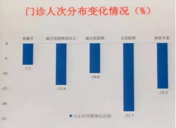 在三級(jí)醫(yī)院里,不同職級(jí)醫(yī)生的接診量也發(fā)生了變化??傮w來看,改革后,副主任醫(yī)師門診人次下降了10%,主任醫(yī)師下降了22.7%,知名專家的門診人次下降了15.2%。“可以看到,大家在就診的時(shí)候更加理性,不盲目追求專家號(hào)。這也緩解了真正需要專家號(hào)的患者掛號(hào)難的問題,使得我們的專家資源更能夠用于那些疑難重癥的處置上,而不是我們的專家去看普通病、常見病。”