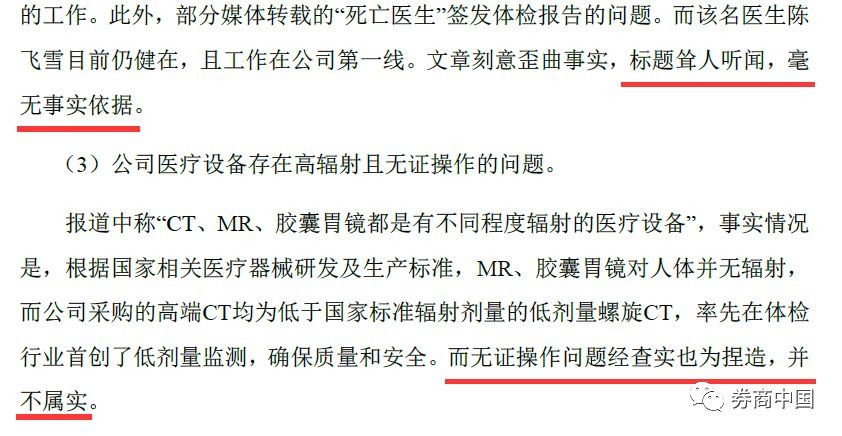 美年健康回復(fù)深交所稱,公司不存在無證上崗、持錯證上崗或持過期證照上崗的情形。緊隨其后,澎湃新聞報道稱,廣州市天河區(qū)衛(wèi)計局表示,在對舉報涉及的三位醫(yī)生陳某、盧某、魯某進行詢問和現(xiàn)場調(diào)取體檢報告后,醫(yī)生陳某表示部分患者報告非其本人審核,美年富海門診部涉嫌違規(guī)出具報告。