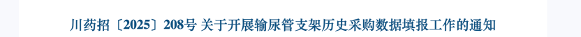 醫(yī)療機(jī)構(gòu)匯總并填報(bào)本單位2024年7月1日—2025年6月30日輸尿管支架的歷史采購(gòu)數(shù)據(jù),包括各產(chǎn)品采購(gòu)總量、實(shí)際采購(gòu)單價(jià)等數(shù)據(jù),如同一個(gè)27位國(guó)家醫(yī)保醫(yī)用耗材對(duì)應(yīng)的產(chǎn)品存在不同采購(gòu)單價(jià)的應(yīng)填寫最低價(jià)。