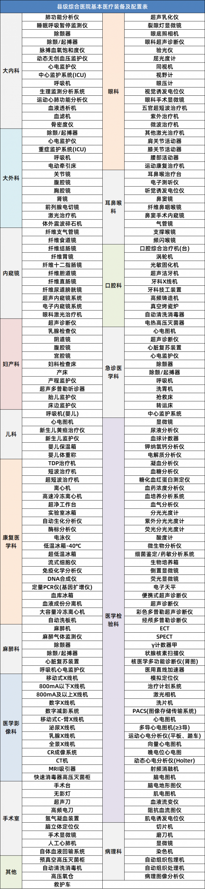 首先是縣級醫(yī)院醫(yī)療器械配置表: