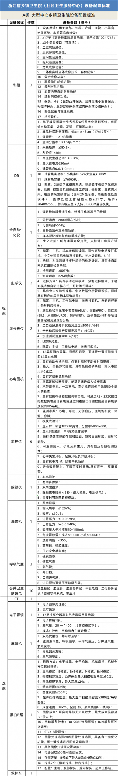 縣級醫(yī)院對醫(yī)療設(shè)備的需求大致如此。鄉(xiāng)鎮(zhèn)衛(wèi)生院目前的設(shè)備配置標(biāo)準(zhǔn),我們可以參考一下浙江?。?/p>