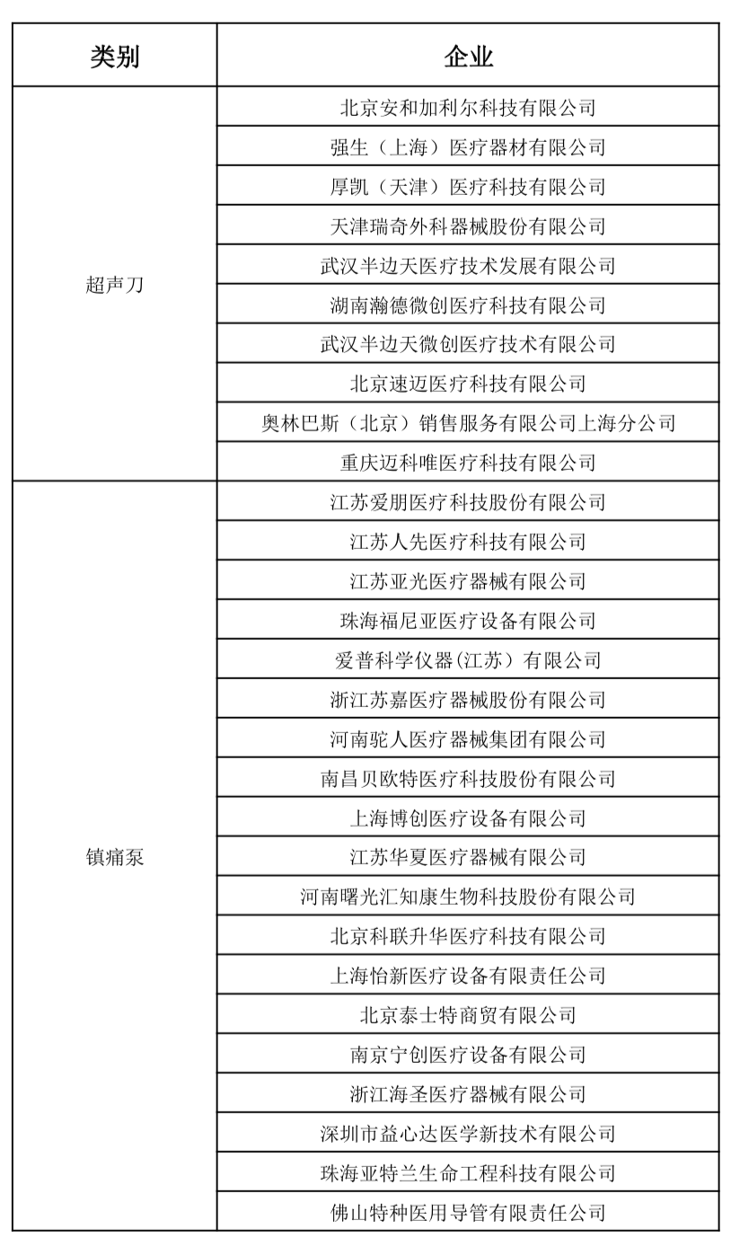 鎮(zhèn)痛泵類參會企業(yè)包括江蘇愛朋、河南駝人等19家械企;
