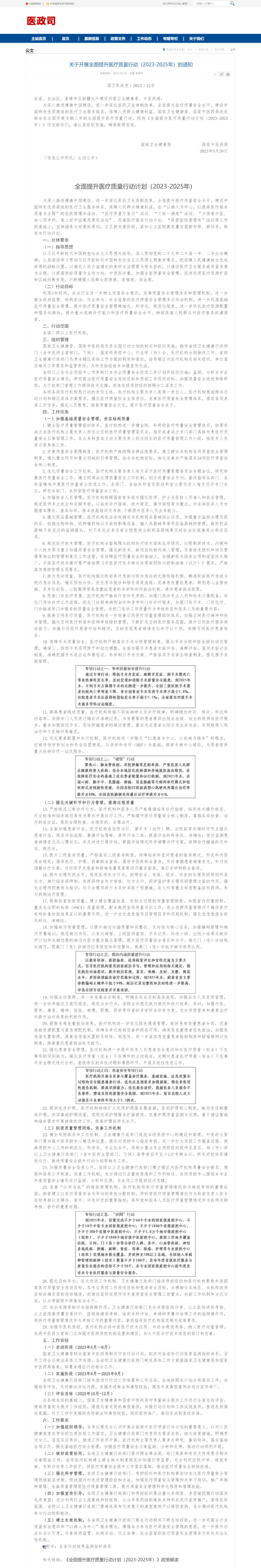 5月29日,國家衛(wèi)健委發(fā)布《關(guān)于開展全面提升醫(yī)療質(zhì)量行動(dòng)(2023-2025年)的通知》(簡稱《通知》),從基礎(chǔ)質(zhì)量安全管理、關(guān)鍵環(huán)節(jié)和行為管理、質(zhì)量安全管理體系建設(shè)等維度提出了28項(xiàng)具體措施和5個(gè)專項(xiàng)行動(dòng)。