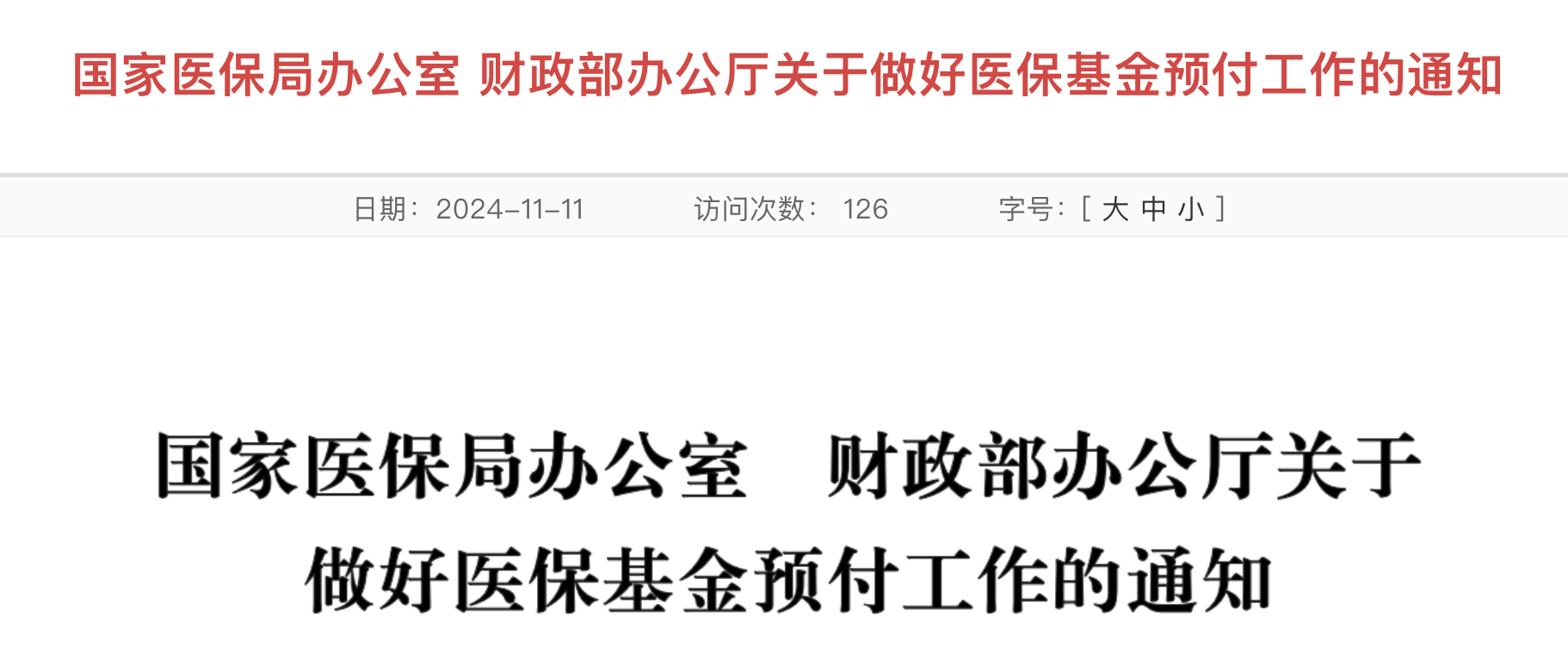 今日(11月11日),國家醫(yī)保局辦公室、財政部辦公廳發(fā)布《關(guān)于做好醫(yī)?;痤A(yù)付工作的通知》(以下簡稱“通知”)(全文附文末)。