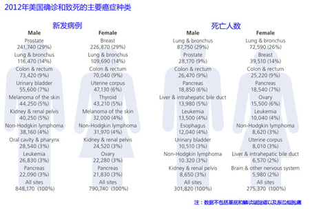 美國(guó)癌癥協(xié)會(huì)公布2012年度全美癌癥數(shù)據(jù)預(yù)估結(jié)果