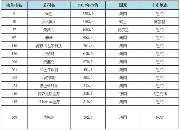 全球市值500強(qiáng)發(fā)布,14家大牌器械公司上榜