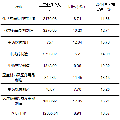 2015年1-6月醫(yī)藥工業(yè)主營業(yè)務收入完成情況