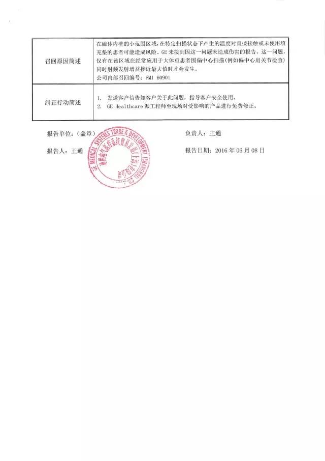 2、通用電氣醫(yī)療系統(tǒng)貿(mào)易發(fā)展(上海)有限公司對(duì)磁共振成像系統(tǒng)主動(dòng)召回