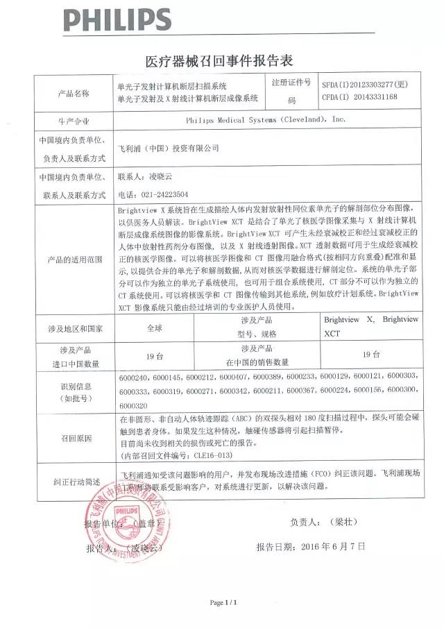 4、飛利浦(中國)投資有限公司對(duì)單光子發(fā)射計(jì)算機(jī)斷層掃描系統(tǒng)、單光子發(fā)射及X射線計(jì)算機(jī)斷層成像系統(tǒng)主動(dòng)召回