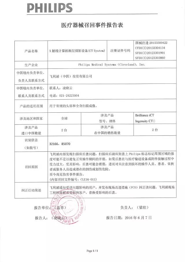 5、飛利浦(中國)投資有限公司對(duì)X射線計(jì)算機(jī)斷層攝影設(shè)備主動(dòng)召回