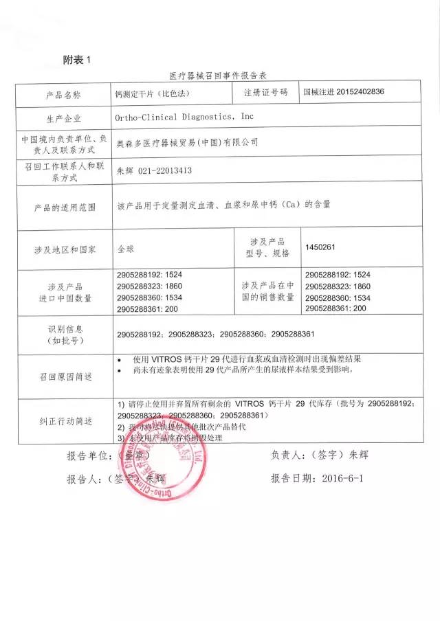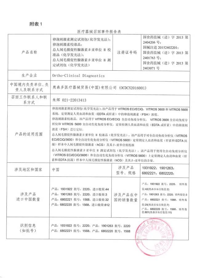 奧森多醫(yī)療器械貿(mào)易(中國)有限公司報(bào)告:企業(yè)發(fā)現(xiàn),涉及產(chǎn)品進(jìn)行血漿或血清檢測時(shí)出現(xiàn)偏差結(jié)果。公司決定召回相關(guān)產(chǎn)品,本次召回級(jí)別II級(jí),涉及產(chǎn)品的型號(hào)、規(guī)格及批次等詳細(xì)信息見《醫(yī)療器械召回事件報(bào)告表》。