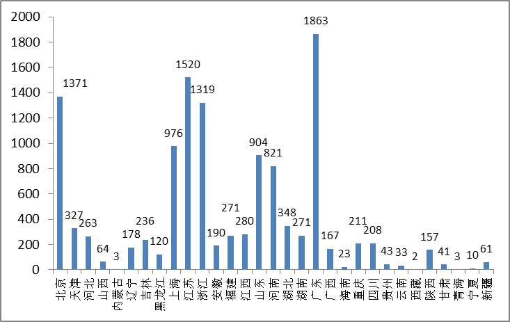 圖14.境內(nèi)第二類醫(yī)療器械省份注冊(cè)數(shù)據(jù)圖