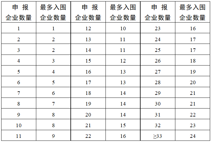 擬中選排名與企業(yè)排名規(guī)則相同。