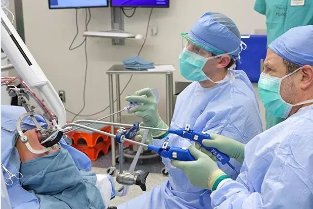 可彎曲機(jī)器人The Flex 就如其名所示,是一種柔性管狀機(jī)器人。醫(yī)生將其插入患者的嘴巴,通過操縱桿來控制其移動(dòng)。醫(yī)生可通過前端有的攝像頭在患者氣管內(nèi)移動(dòng)機(jī)器人。因其可看到并到達(dá)非常難到達(dá)的解剖區(qū)域,諸如Goldenberg一樣的外科醫(yī)生開始使用可彎曲機(jī)器人The Flex進(jìn)行手術(shù),這樣就不用在患者下巴或其他位置進(jìn)行切口手術(shù)了。Goldenberg說這種方式不僅手術(shù)快速便捷,醫(yī)療成本更低,同時(shí)還不會(huì)給患者留下創(chuàng)口。