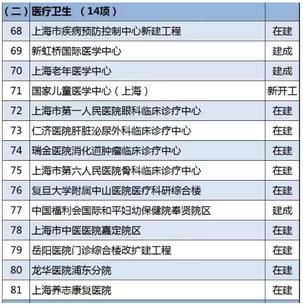 《清單》中,上海市對2021年即將落地的重大建設(shè)項(xiàng)目進(jìn)行了公布。值得注意的是,在166項(xiàng)正式項(xiàng)目中,共涵蓋了14項(xiàng)醫(yī)療衛(wèi)生相關(guān)建設(shè)內(nèi)容。