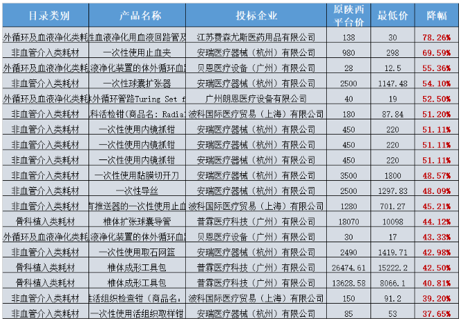除此之外,本次還有雅培、波科國際、上海微創(chuàng)、樂普、庫克、費(fèi)森尤斯等22家企業(yè)118種高值耗材價(jià)格再度調(diào)低,最高降幅高達(dá)78%。