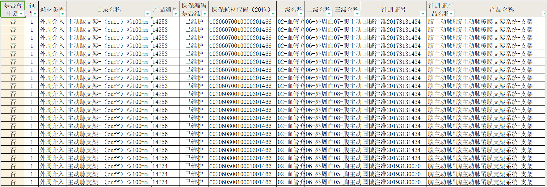 此次申報(bào)數(shù)據(jù)用于河南公立醫(yī)療機(jī)構(gòu)醫(yī)用耗材聯(lián)盟集采,其中神經(jīng)介入類(lèi)共涉及22個(gè)包8450條產(chǎn)品信息,外周介入類(lèi)共涉及46個(gè)包20167條產(chǎn)品信息。具體如下: