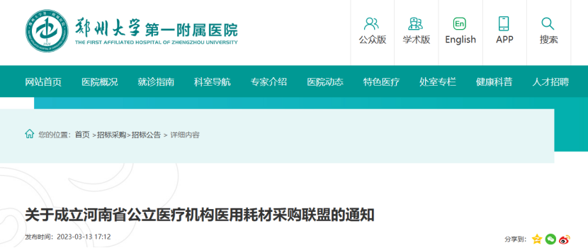 3月13日,河南省公立醫(yī)療機構(gòu)醫(yī)用耗材采購聯(lián)盟辦公室發(fā)布《關(guān)于成立河南省公立醫(yī)療機構(gòu)醫(yī)用耗材采購聯(lián)盟的通知》,鄭州大學(xué)第一附屬醫(yī)院、河南省人民醫(yī)院牽頭成立河南省公立醫(yī)療機構(gòu)醫(yī)用耗材采購聯(lián)盟。
