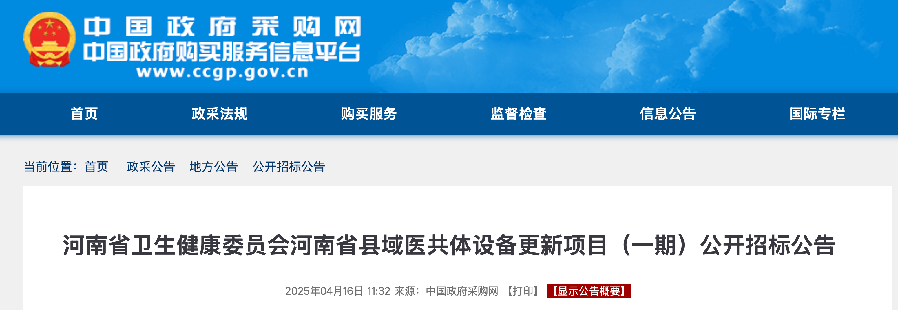 近日,河南、湖南兩省分別發(fā)布縣域醫(yī)共體設(shè)備更新項(xiàng)目公開(kāi)招標(biāo)公告。