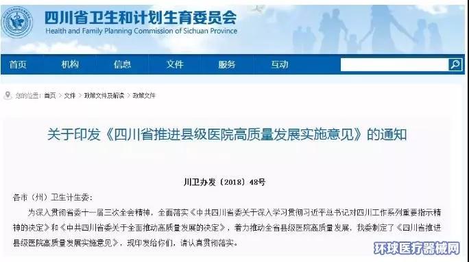 近日,四川省衛(wèi)計委發(fā)布《四川省推進縣級醫(yī)院高質(zhì)量發(fā)展實施意見》(以下簡稱《意見》)。