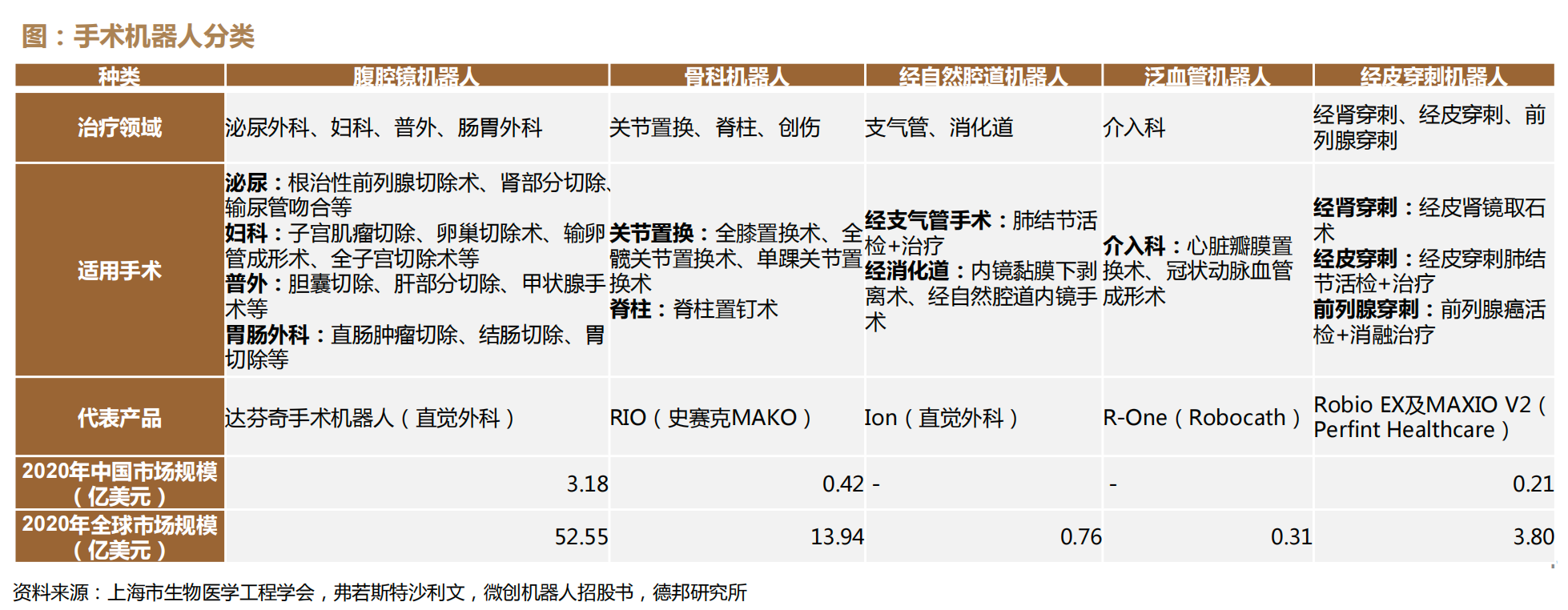 目前手術(shù)機器人主要分為腔鏡機器人、骨科機器人、經(jīng)自然腔道機器人、泛血管機器人及經(jīng)皮穿刺機器人五個賽道,其中腔鏡機器人為目前手術(shù)機器人最主流、商業(yè)化最成熟的賽道。