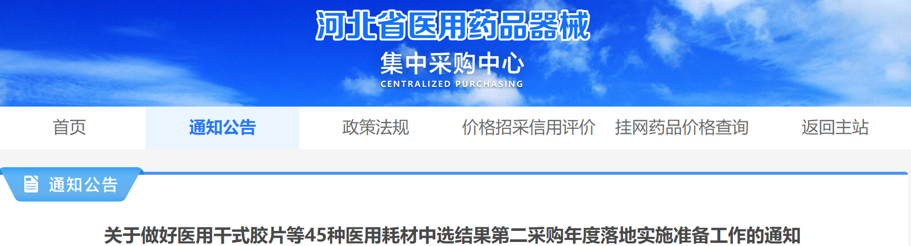 近日,河北省醫(yī)用藥品器械集中采購中心發(fā)布《關于做好醫(yī)用干式膠片等45種醫(yī)用耗材中選結果第二采購年度落地實施準備工作的通知》(簡稱《通知》)。