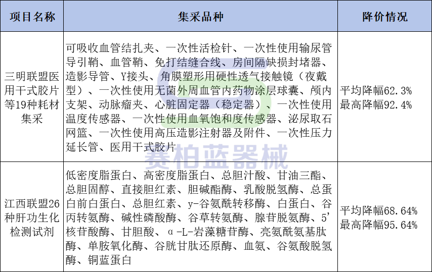 2024年啟動的全國七大聯采中,江西生化試劑聯盟、浙江乳房旋切針聯盟、福建結扎夾聯盟等集采結果已公布,預計也將于近期正式落地執(zhí)行。