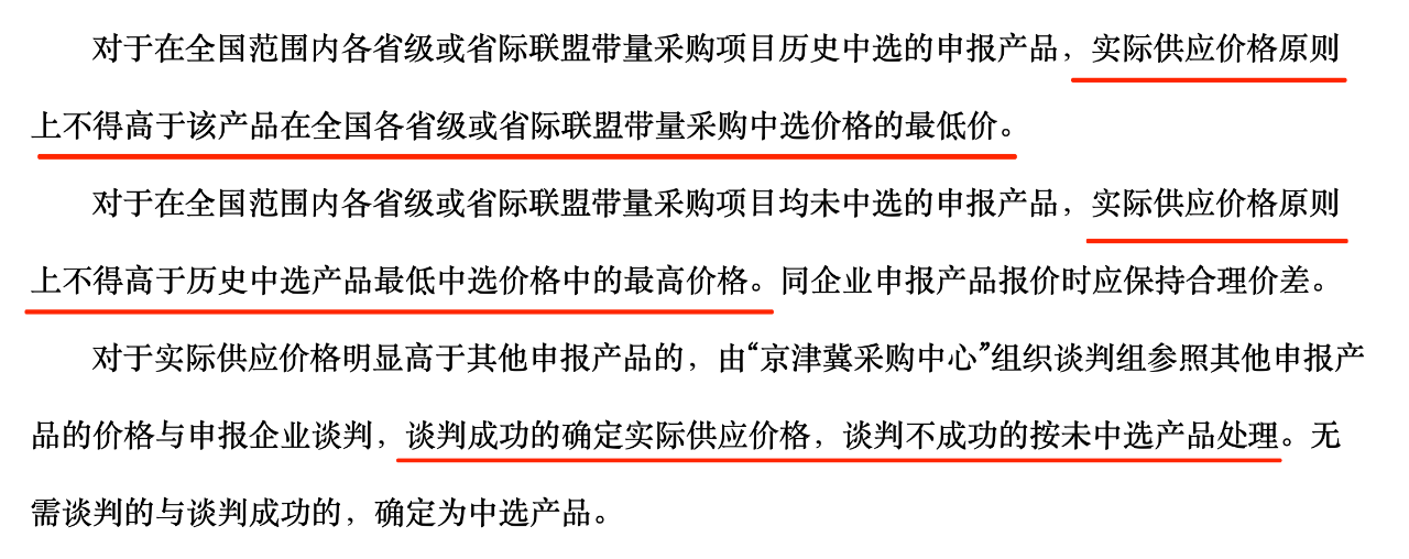 采購周期內,中選企業(yè)的非中選產品按不高于本項目該企業(yè)同品種最高中選價格掛網的,且不高于其在其他省級或省際聯(lián)盟帶量采購中選價格的,可視為中選產品;未中選企業(yè)的產品按不高于本項目同品種最高中選價掛網的,在醫(yī)療機構考核時不視為非中選產品。