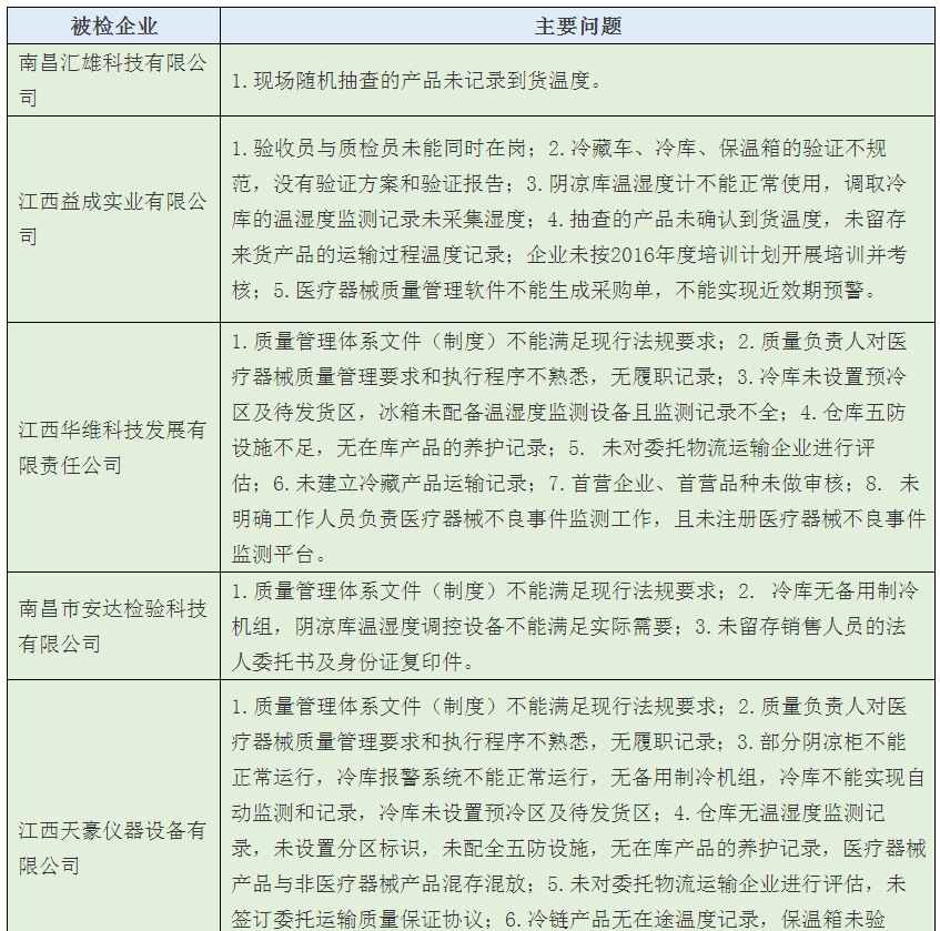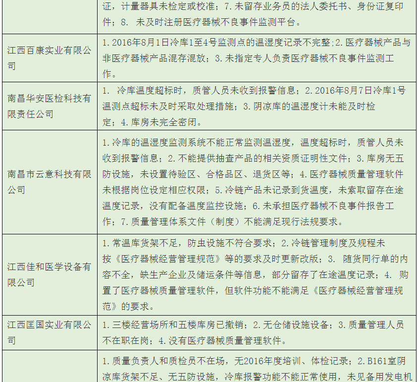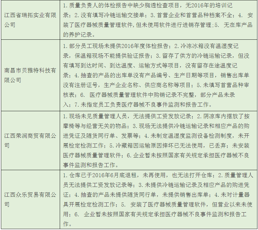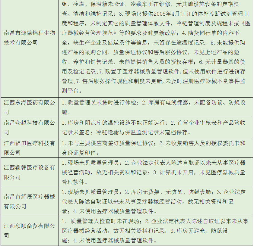 歸結(jié)起來,南昌市藥監(jiān)局經(jīng)過飛檢后發(fā)現(xiàn),該市械商主要存在以下6方面的不依法經(jīng)營或者不符合醫(yī)械GSP要求問題: