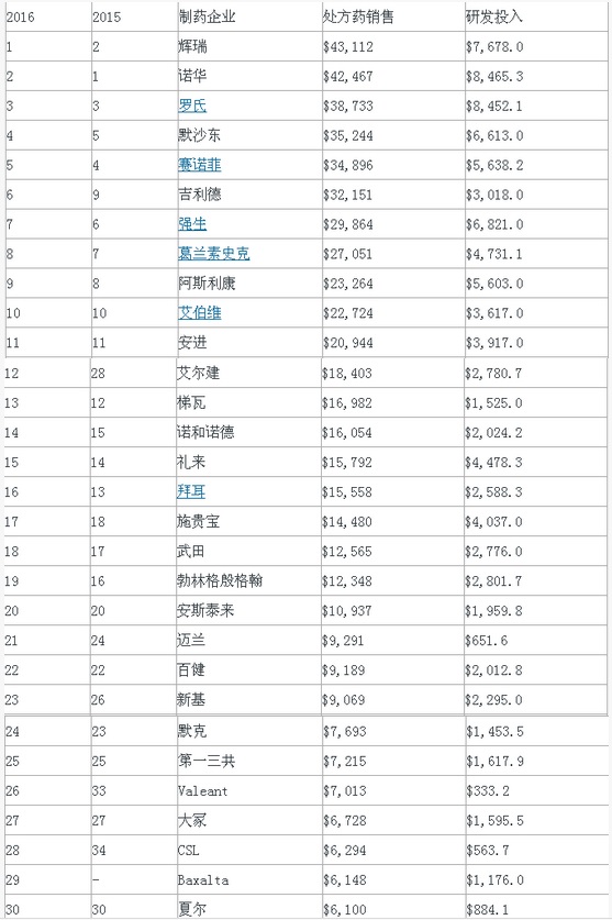 美國《制藥經(jīng)理人》每年的榜單數(shù)據(jù)來自全球醫(yī)藥市場研究機構(gòu)EvaluatePharma,這個榜單專注全球制藥企業(yè)的處方藥銷售,所以一直被企業(yè)年度總結(jié)及醫(yī)療機構(gòu)所重視,2015年全國藥品集中采購很多省的招標方案中將其列入?yún)⒖紭藴剩梢垣@得技術(shù)標的加分。